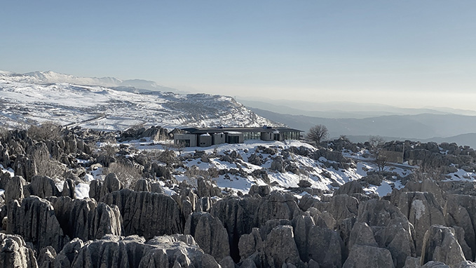 Auf den Ausläufern des Libanongebirges liegt auf etwa 1700 Metern über dem Meer die Ortschaft Faqra. Der Architekt Karim Nadir hat hier für einen privaten Bauherren ein Wohnhaus errichtet, welches als Rückzugsort vom Großstadtleben in Beirut dient. „On the Rocks“ hat er dieses Haus aus Beton und Glas genannt, das von einem dunklen VMZINC ANTHRA-ZINC-Dach bedeckt wird. Es fügt sich mit seinen Materialien so gut in die Landschaft ein, dass es fast wirkt, als wollte es sich verstecken. Die Wertschätzung für die Umgebung und die Verpflichtung, den Eingriff in die Natur so minimalistisch wie möglich zu gestalten, zeichnen den Rückzugsort in den Bergen aus. Mehr interessante Details lesen Sie hier in unserem aktuellen Blogeintrag, viel Spaß dabei!