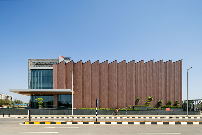 Peekay Steel Castings hat in Bengaluru ein modernes Werk errichtet, das durch seine markante Zinkfassade hervorsticht. Das Architekturbüro Venkataramanan Associates entschied sich für vorbewittertes Zink in der Farbe PIGMENTO rot, das die industrielle Herkunft des Unternehmens und die moderne 3D-Drucktechnologie symbolisiert. Die Fassade kombiniert opake und transparente Bereiche und setzt besonders auf gebäudehohe Lamellen, die sowohl ästhetische als auch funktionale Aufgaben übernehmen, wie etwa die Reduzierung des Wärmeeintrags. Zink wurde aufgrund seiner Flexibilität, Langlebigkeit und Recyclingfähigkeit gewählt, was zur Nachhaltigkeit des Gebäudes beiträgt.